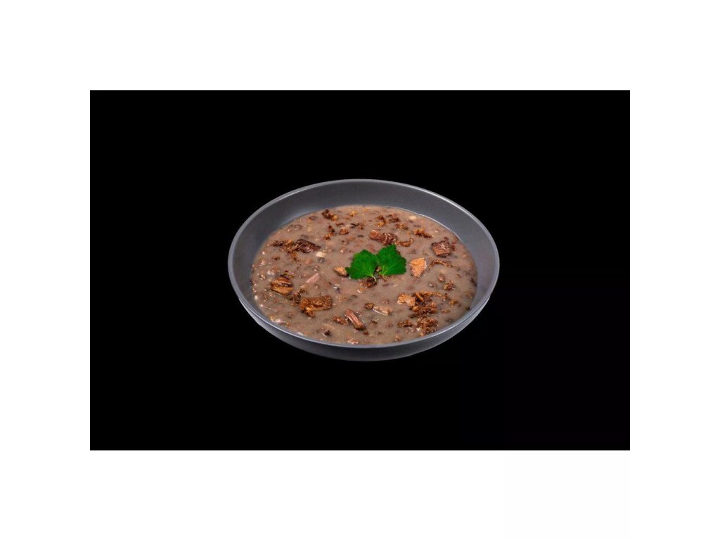 Chutná čočková polévka s kousky uzeného masa od našeho lokálního dodavatele vám rychle zažene hlad.
